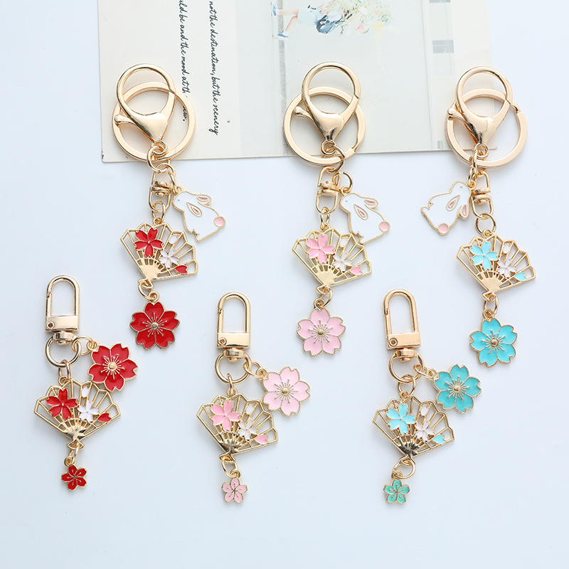 日系小清新樱花扇子钥匙扣少女心闺蜜钥匙圈包包挂件配饰礼物汽车