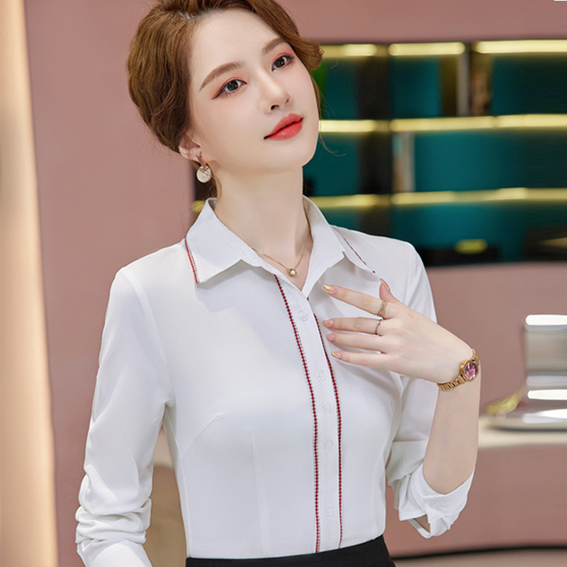 Baju kantor wanita lengan panjang, pakaian bisnis perempuan, baju putih elegan modis gaya Korea baru musim gugur dan musim dingin