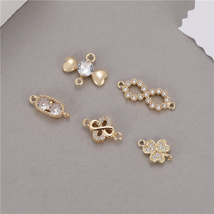 Gelang gantung ganda, aksesori perhiasan diy ekstensi ujung kalung, zirkon bertatahkan emas 14K