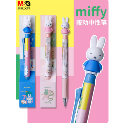 Miffy-shaped push-button neutral pen, cartoon style, black, 0.5mm bullet tip, for student use, signature pen, FGPK7534