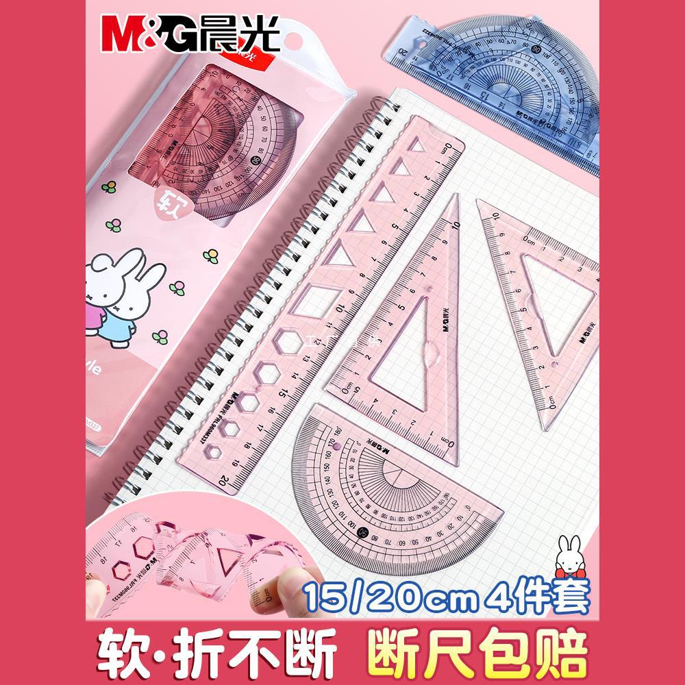 Setelan Penggaris Lunak Khusus Murid Sekolah Dasar Lampu Pagi Setelan Ukuran 20Cm Set Empat Potong Penggaris Lunak Transparan 15Cm dengan Gelombang