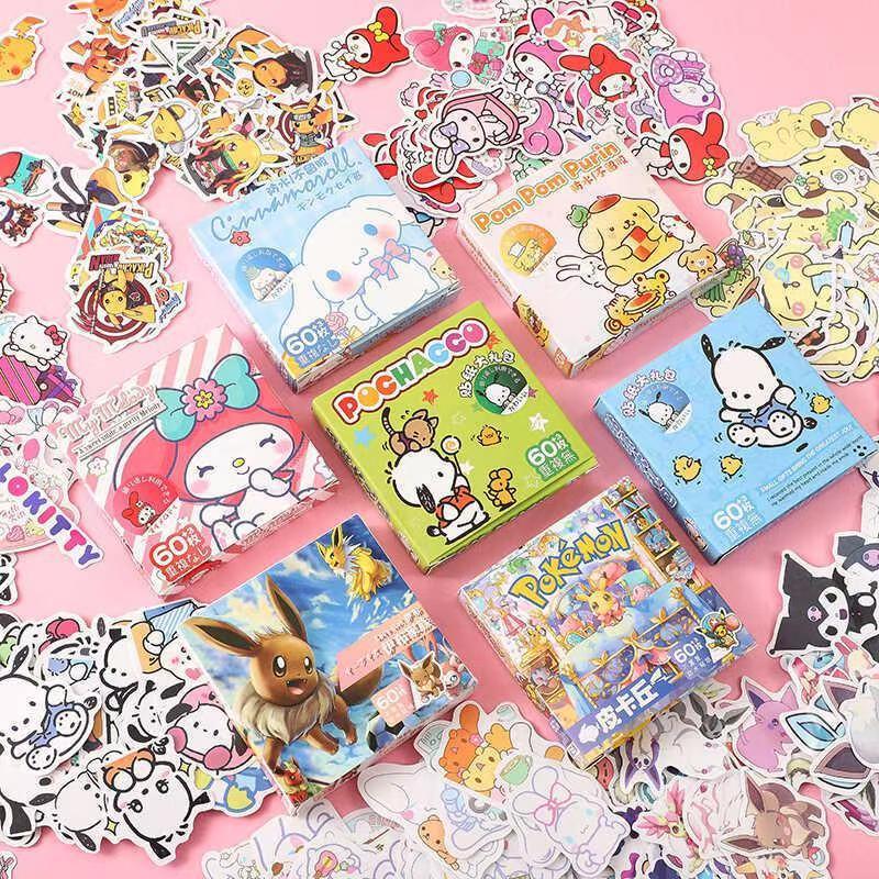 Stiker Kartun Sanrio Baru Stiker DIY Buku Tangan Kreatif 63 Kotak Hadiah Dekorasi Koper LABUBU Perdagangan Luar Negeri