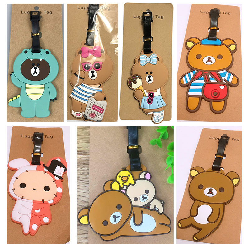 Tag bagasi beruang lucu kartun Mudah hitam dan putih beruang tag bagasi tag bagasi perjalanan tag identifikasi