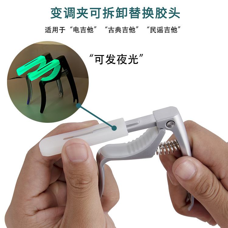 Gitar Capo gitar listrik klasik, gitar Capo tiga-dalam-satu bercahaya, gitar listrik Universal Aloi Capo