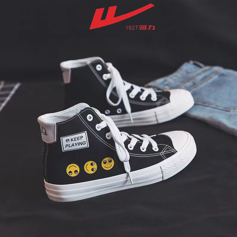 Sepatu kanvas pria dan wanita, sepatu kanvas nyaman, sepatu siswa baru musim semi, sepatu serbaguna, sepatu kanvas high-top, wajah kuning kecil