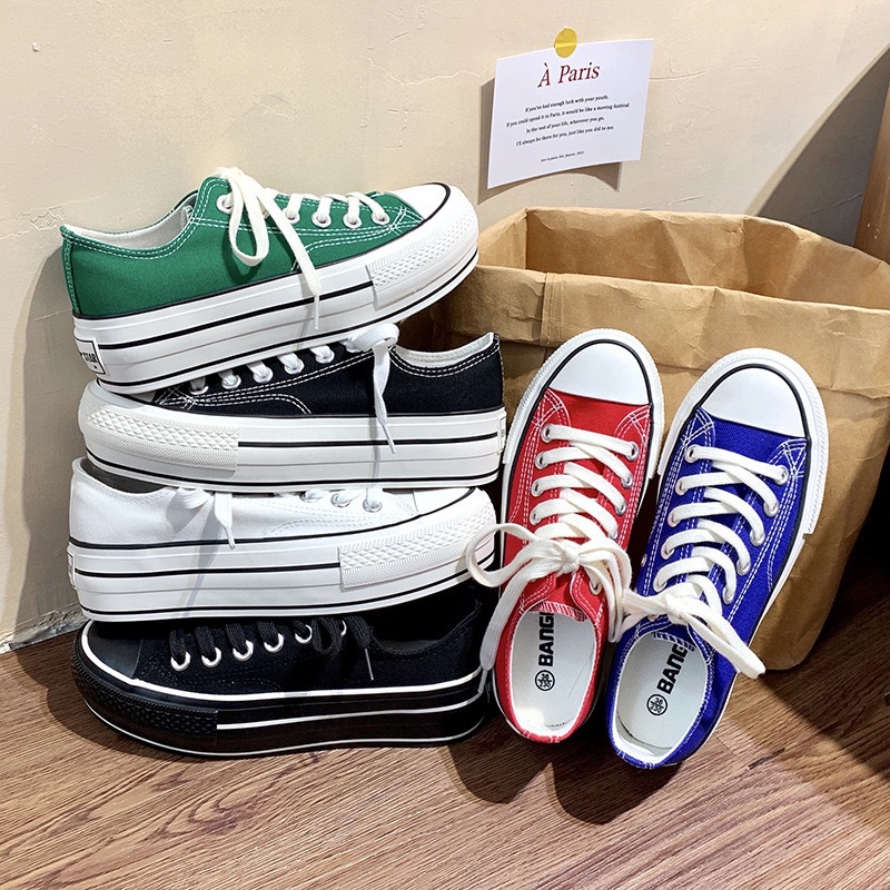Sepatu kanvas Korea penambah tinggi wanita, sepatu fashion Korea ins Semua cocok warna baru musim semi 2024