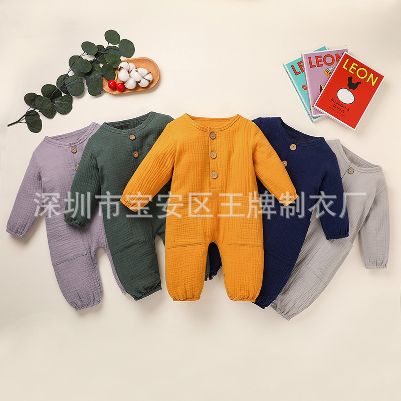 Perdagangan luar negeri bayi baru Eropa dan Amerika lintas batas musim gugur katun dan linen tas perca 5-warna satu potong romper pabrik batch langsung