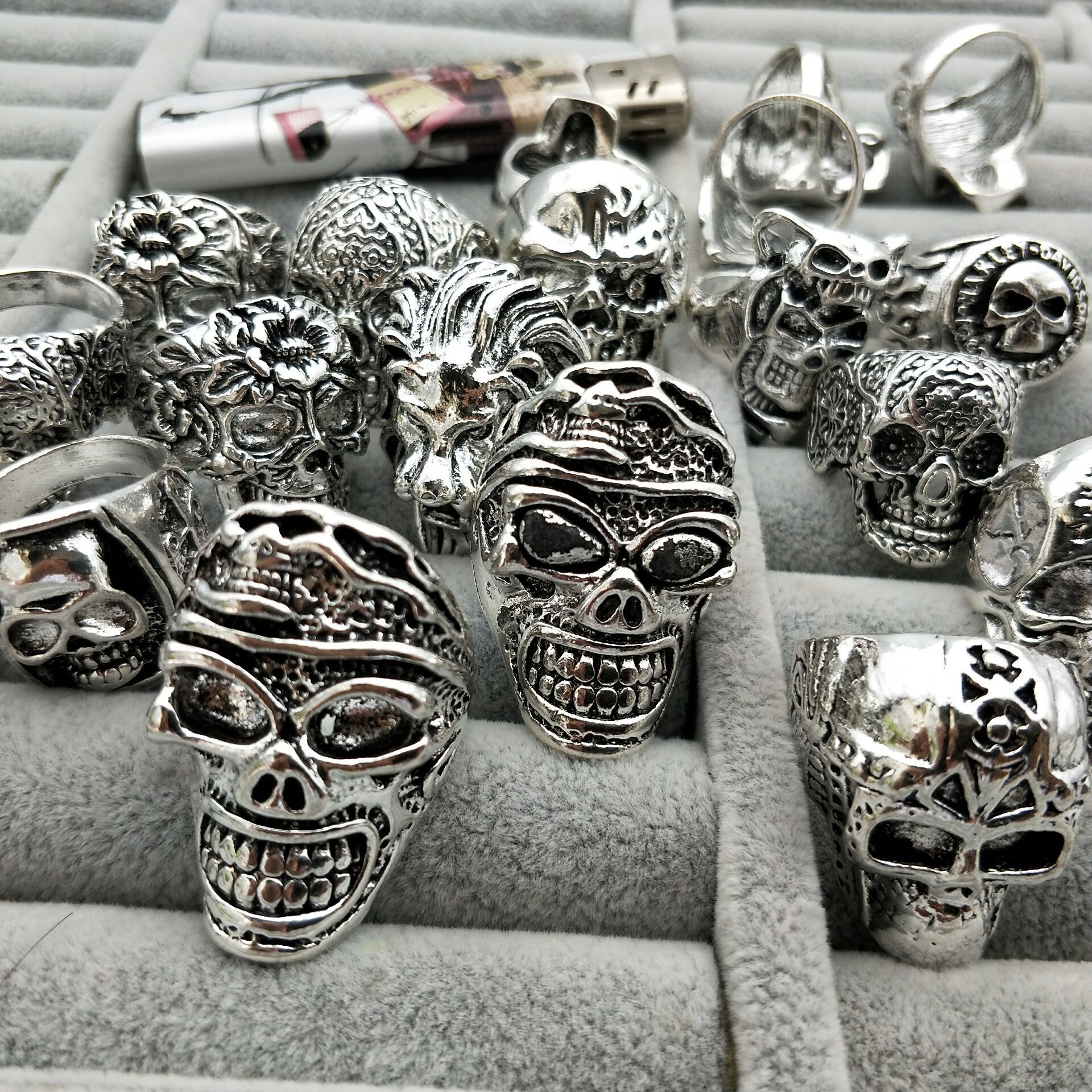 Penjualan laris kreatif paduan seng kepala hantu besar cincin ukuran bebas cincin tengkorak Eropa dan Amerika perhiasan laris perdagangan luar negeri