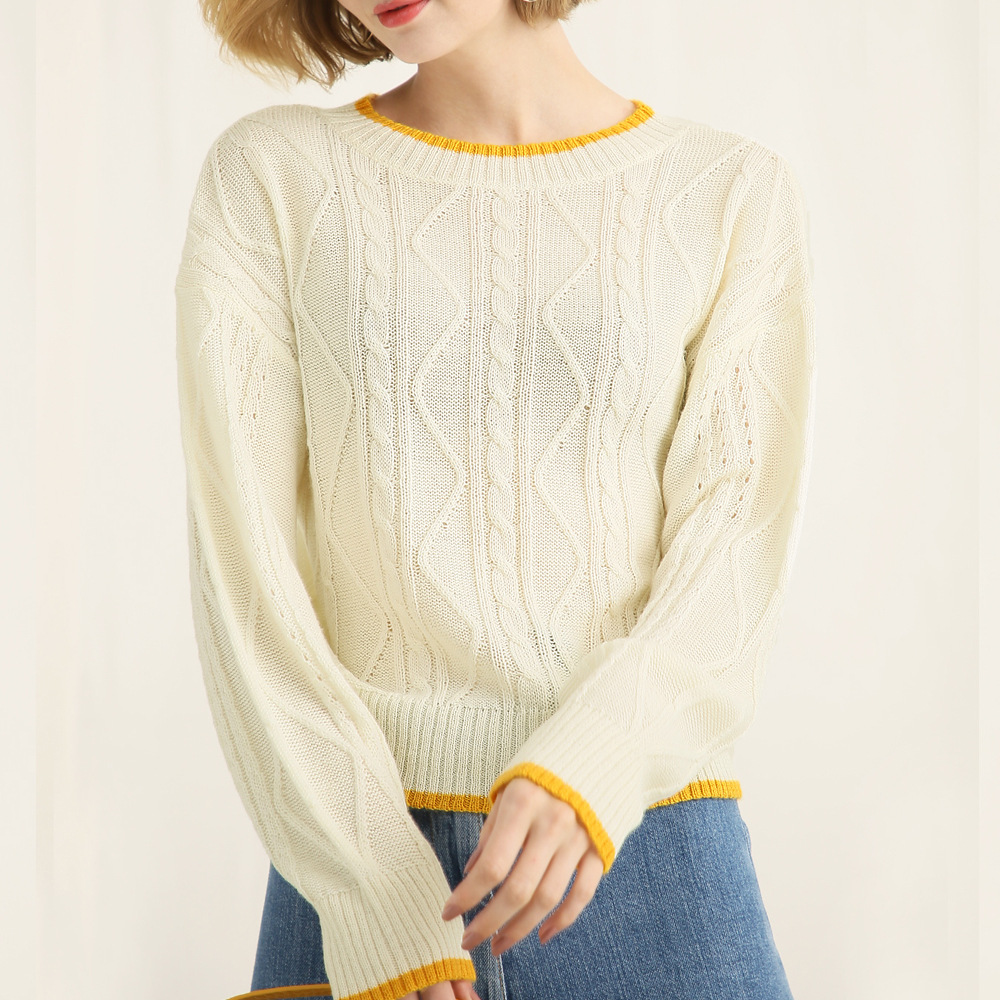 Pulaiya factory sweater wol wanita, sweater longgar pola tiga dimensi 3D warna kontras sederhana musim gugur dan musim dingin