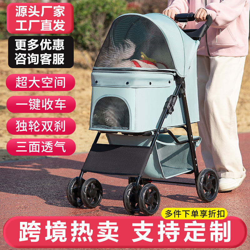 Kereta dorong anjing kucing, kereta dorong hewan peliharaan anjing berjalan Corgi Teddy out kecil dan sedang ringan lipat anjing berjalan tangan