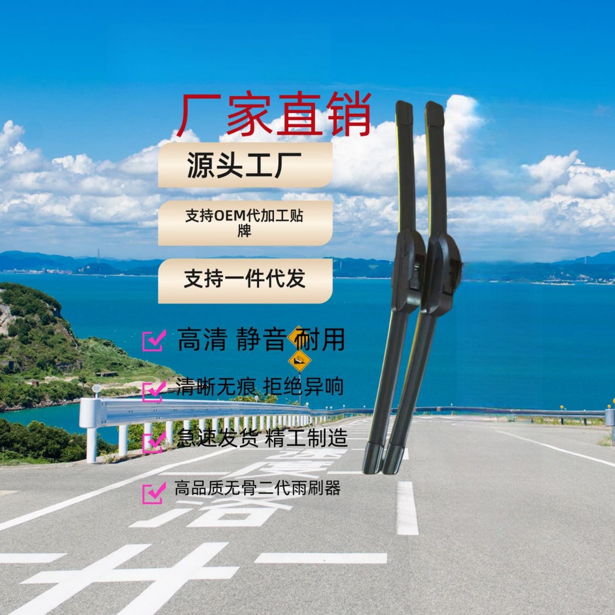 Pabrik Sumber Perangkat Wiper Pengukur Hujan Kontrol Kualitas Tinggi Generasi Kedua Tipe U Tanpa Ostetik Universal Multifungsi HD Bisu