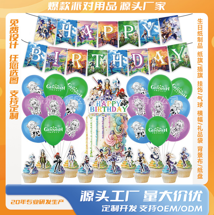 Barang Tersedia Barang Pesta Bertema Dewa Asli Dekorasi Bendera Tarik Ulang Tahun Genshin Impact Balon Set Bendera