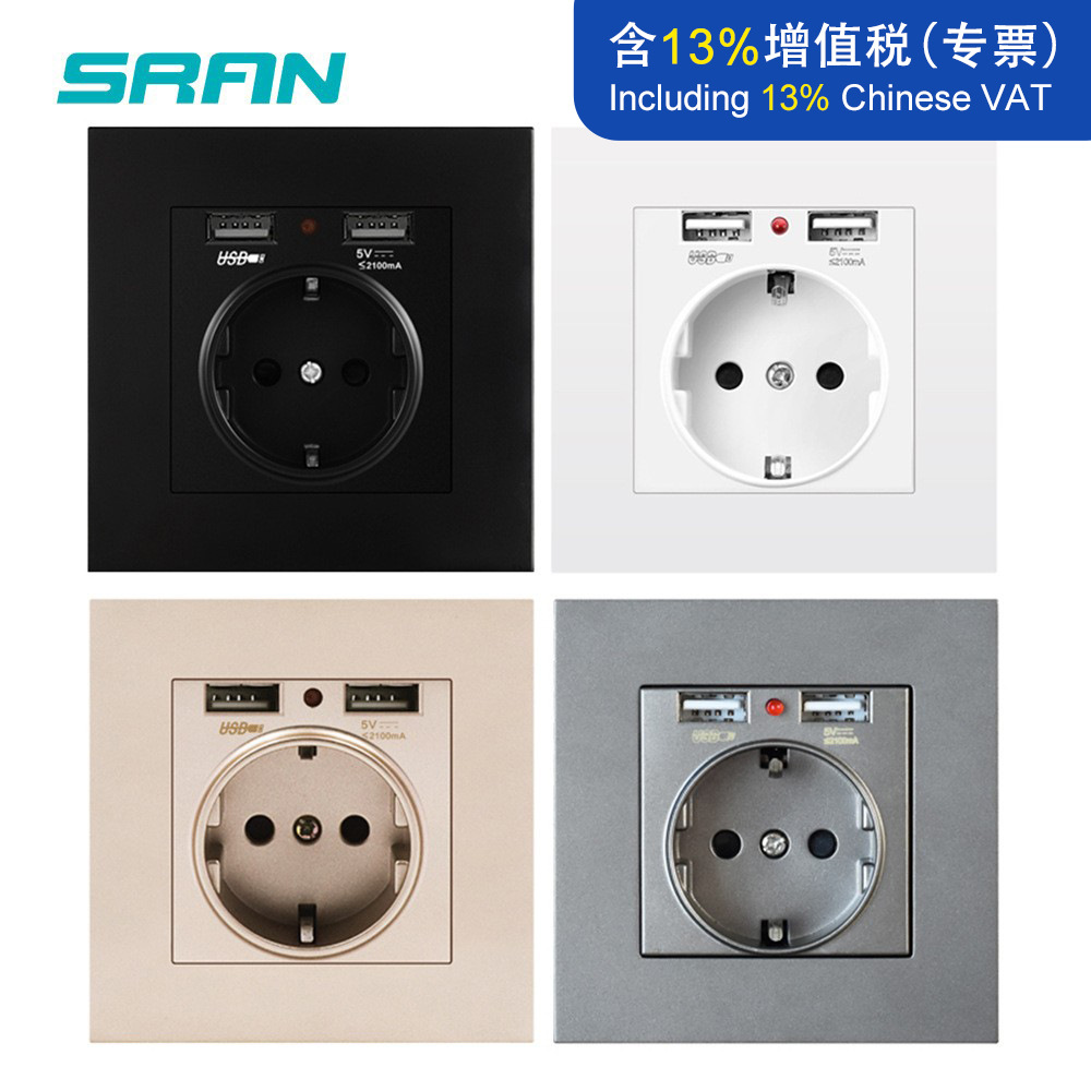 Soket standar Jerman standar Eropa Jerman dengan USB ganda standar Eropa 16A STANDAR Perancis dengan USB soket daya dinding Eropa