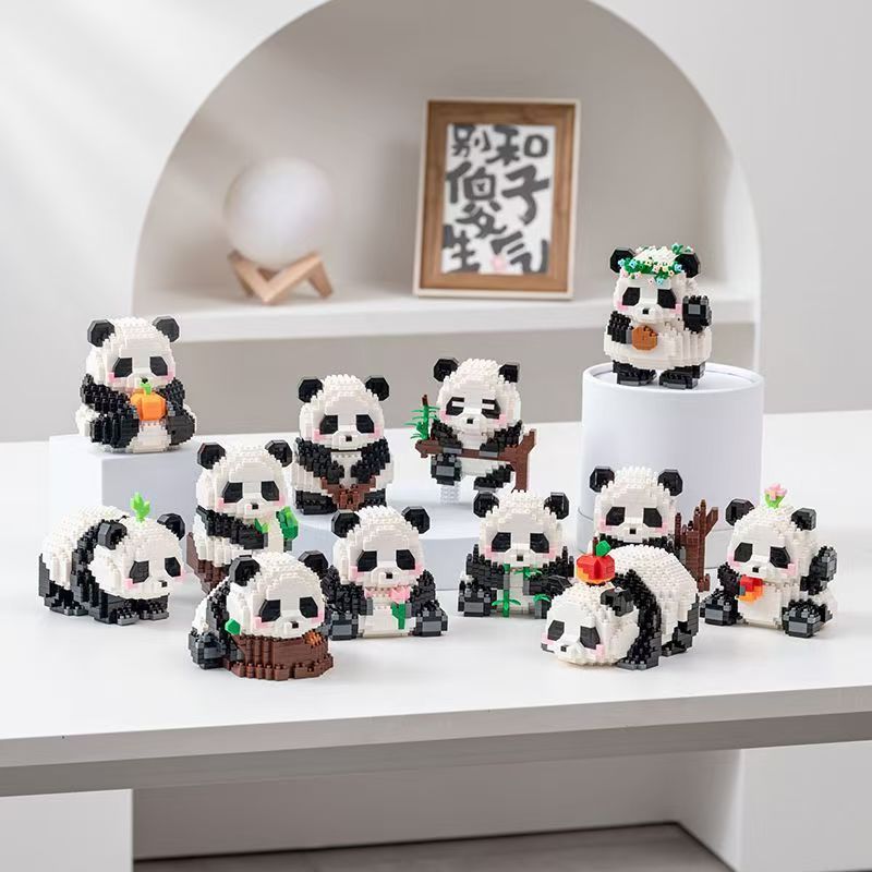 Mainan blok bangunan partikel kecil bertema panda, kompatibel dengan Lego, hadiah puzzle 3D, blok bangunan bertema panda