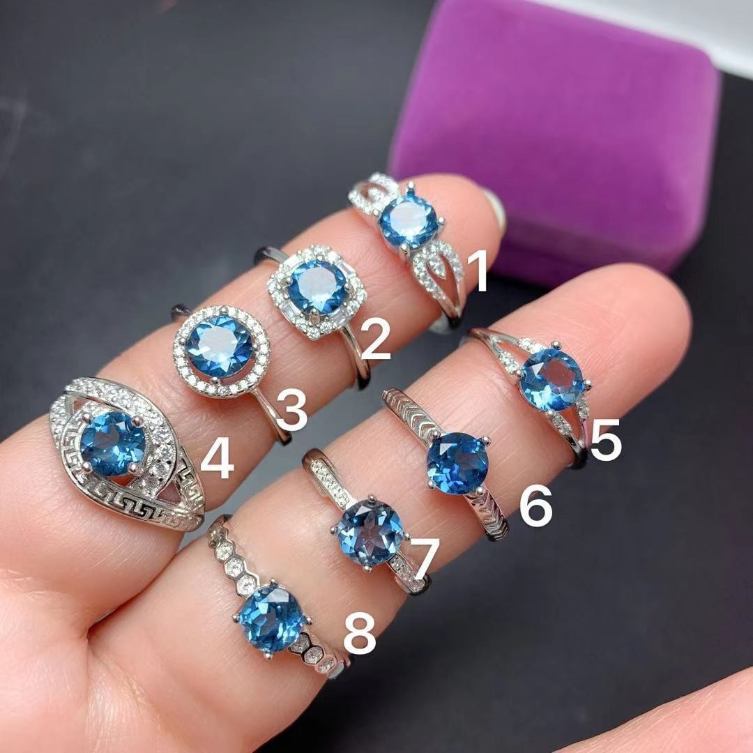 Cincin Topaz biru London alami bertatahkan 925 cincin hadiah ulang tahun pertunangan wanita cincin perhiasan harta karun warna-warni cincin generasi rambut