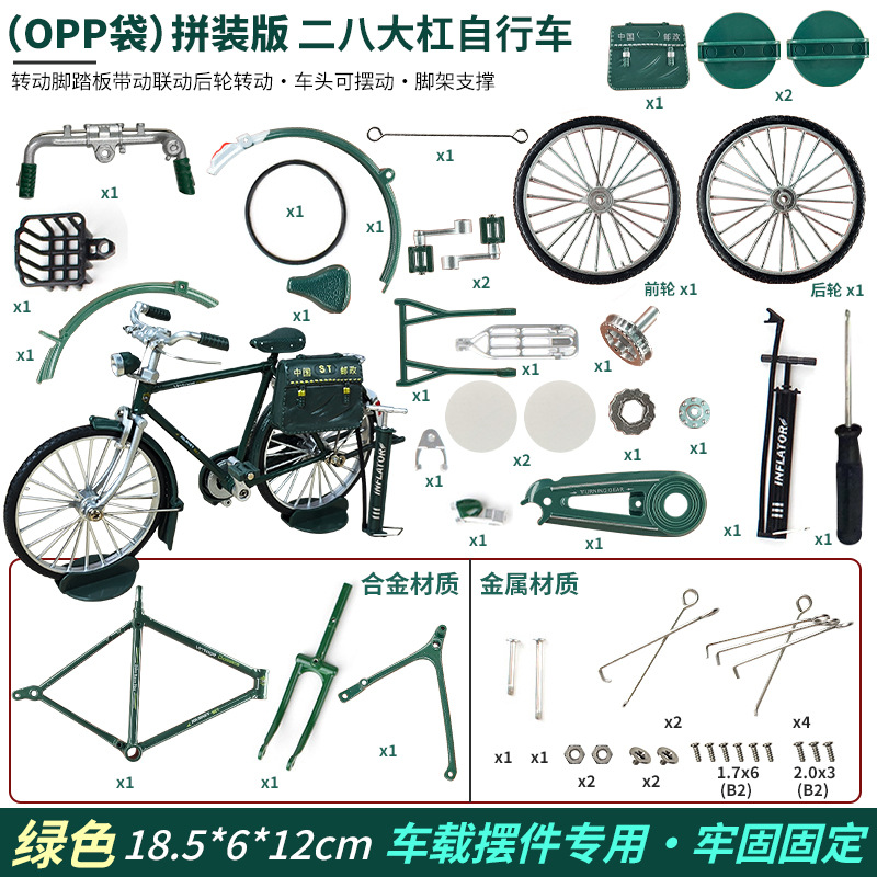 拼装仿真邮政二八大杠自行车模型玩具自行车模型合金二八大杆车载