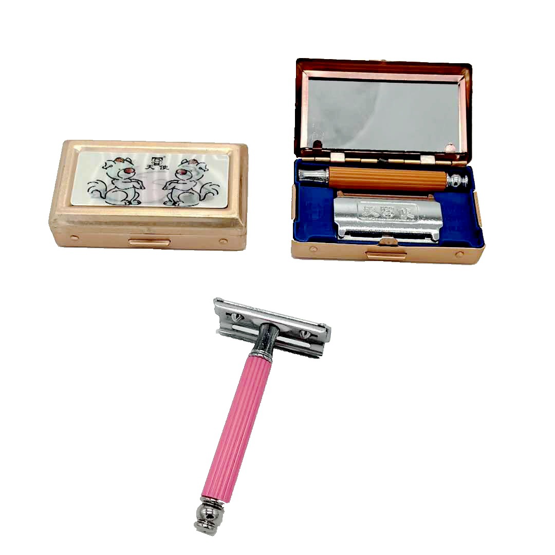 Angel alat cukur manual, pisau cukur kuno dua sisi pisau stainless steel pegangan pisau kotak aluminium pisau cukur pria