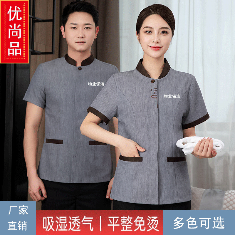 Hotel pembersih bibi pakaian kerja lengan pendek wanita musim panas mal belanja ruang tamu properti supermarket hotel setelan pakaian pembersih
