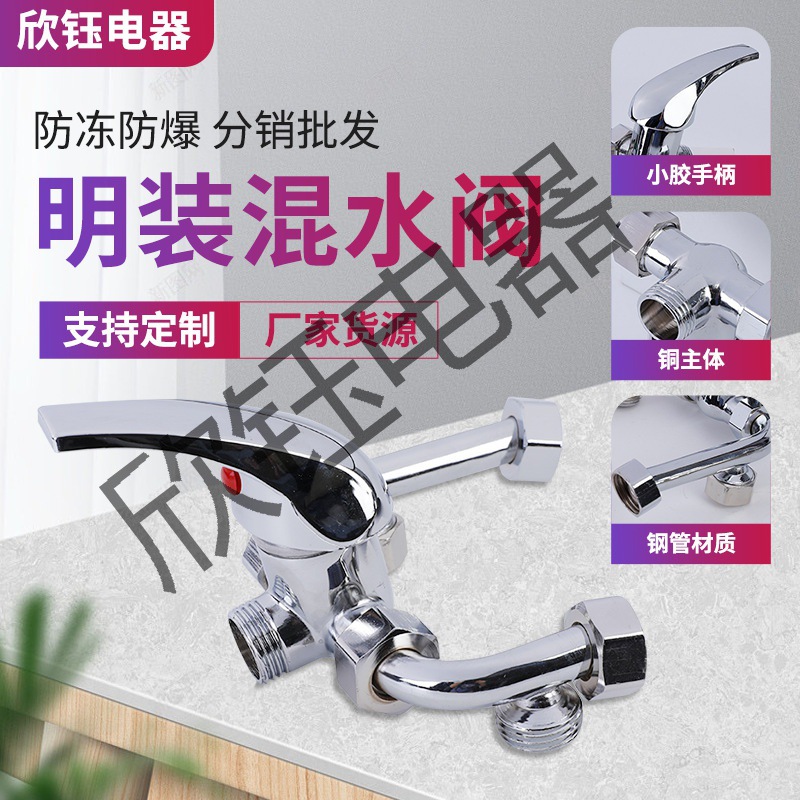 Pemanas Air Listrik Kemasan Panas dan Dingin Campuran Katup Switch Tipe U Katup Tembaga Paduan Paduan Air Pancuran Keran Aksesoris Kamar Mandi