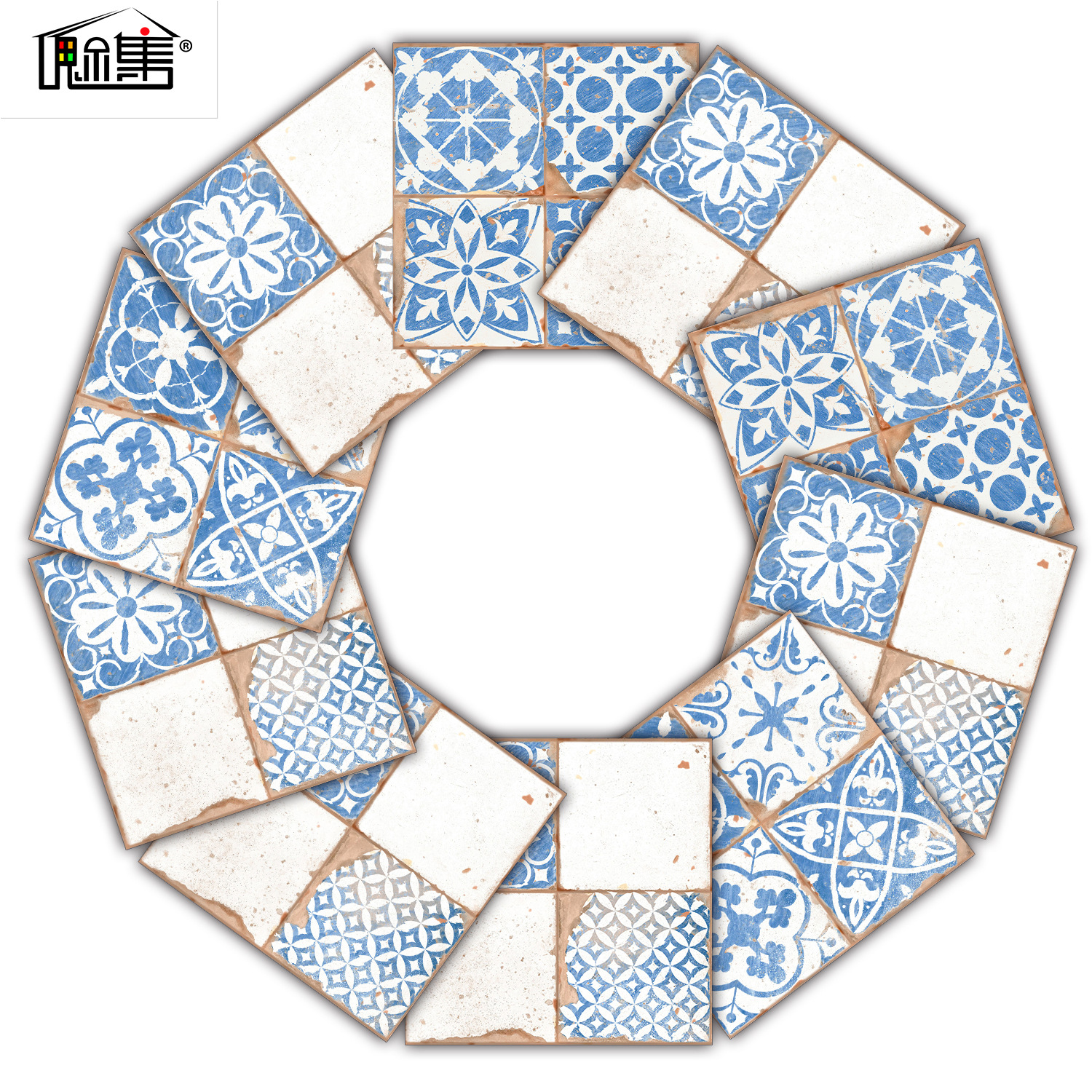 10 buah wallpaper kamar mandi merekat sendiri tahan air dan tahan minyak vintage biru dan putih imitasi stiker ubin milik sendiri hak cipta Amazon