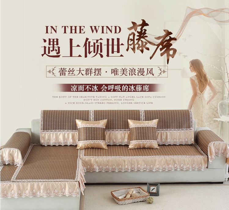 Sarung sofa musim panas, bantal sofa sutra es tebal anti selip bambu rotan musim panas, alas handuk kustom modern sederhana, penutup sofa kulit