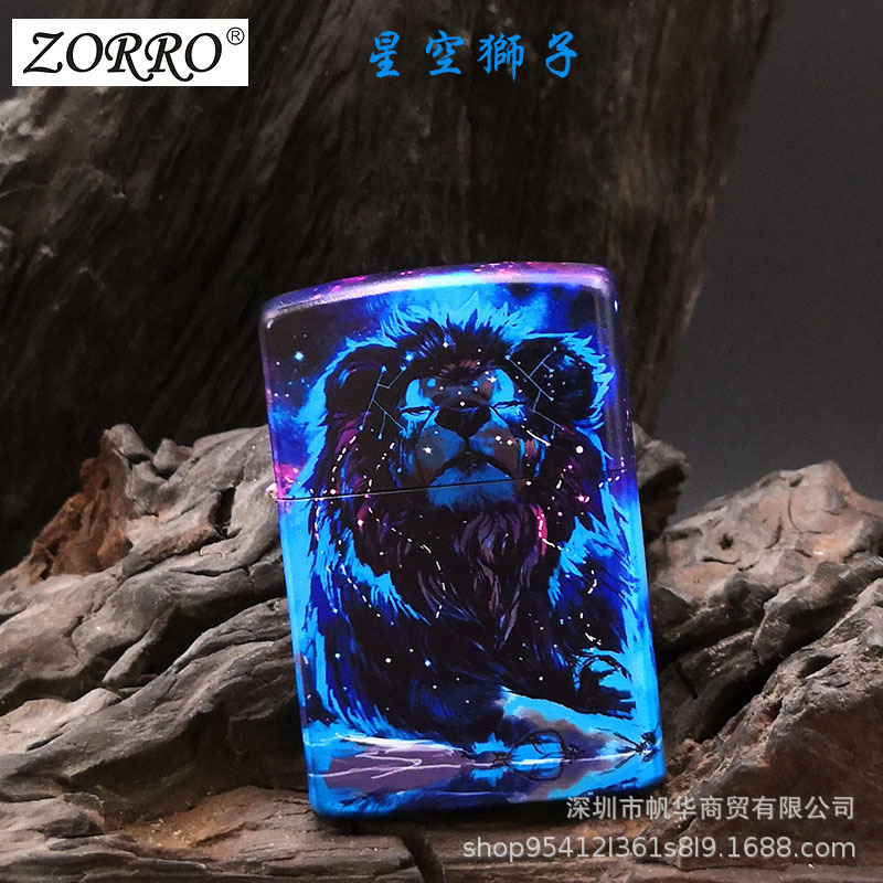 ZORRO ZORRO langit berbintang Singa minyak tanah pemantik warna kuningan cetak flip tahan angin roda gerinda retro personalisasi kreatif