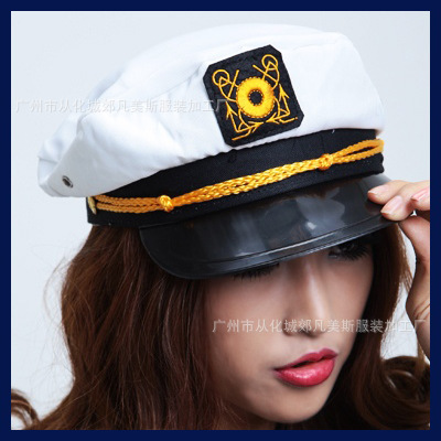 Huihai topi tentara kepribadian putih, topi pelaut datar seragam cosplay dewasa M261