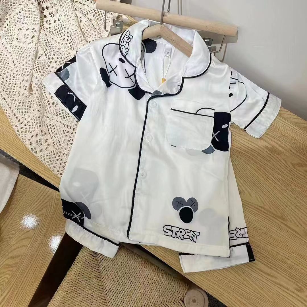 Guoguo Yinuo piama lengan pendek, baju tidur sutra es lengan pendek musim panas pelindung dada terbuka