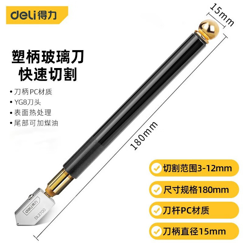 Deli alat pemotong kaca berlian gores kaca tebal pisau tangan memotong pisau gagang plastik pisau kaca pisau kaca