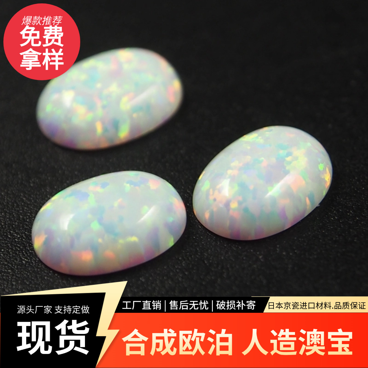 Dalam stok opal sintetis berbentuk datar polos oval cincin opal buatan permukaan batu kosong permata grosir