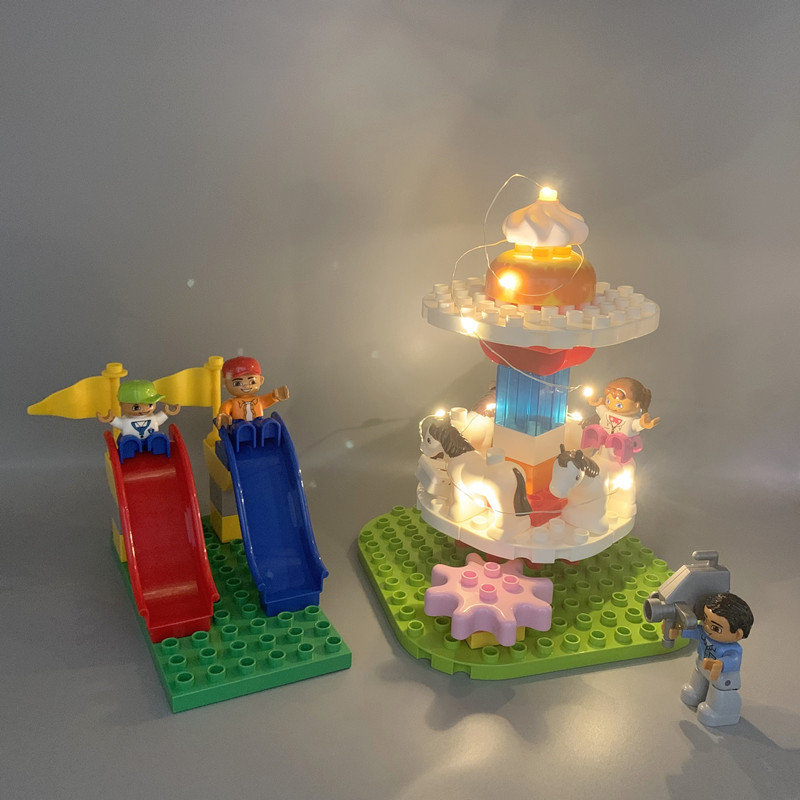 Cocok dengan perakitan bagian blok bangunan partikel besar Aksesori putar boneka kuda meluncur taman hiburan bagian mainan rumah bermain