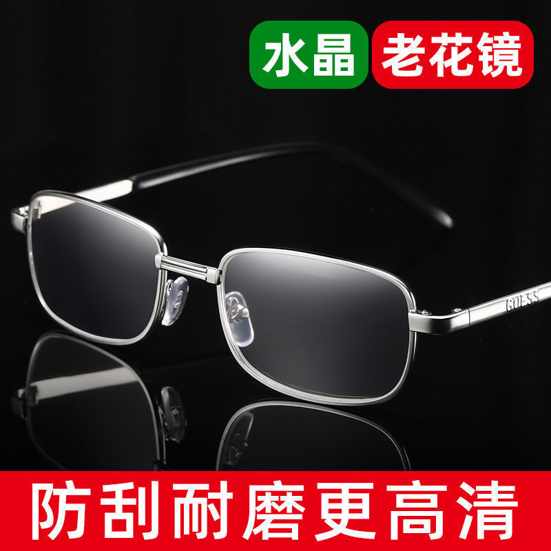 Kacamata presbiopi kristal pria dan wanita bingkai penuh HD kacamata presbiopi besi tahan gores kacamata presbiopi rabun jauh pasokan langsung pabrik