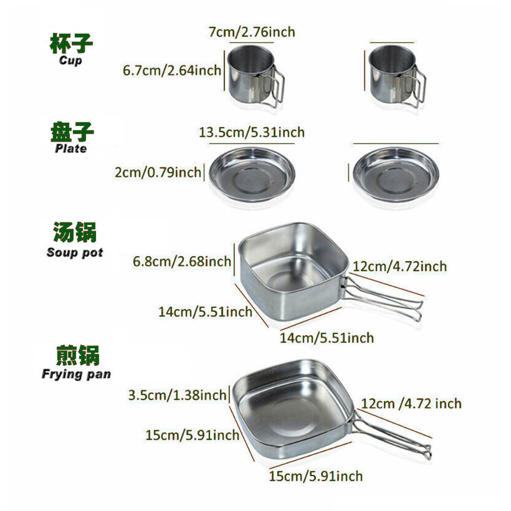 Peralatan makan berkemah, panci stainless steel set piring mangkuk dapat dilipat, set cangkir mangkuk 6 potong luar ruangan