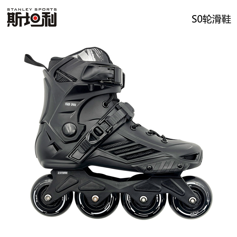 Sepatu roda pelajar dewasa, sepatu roda hitam bernapas FSK datar profesional baris tunggal
