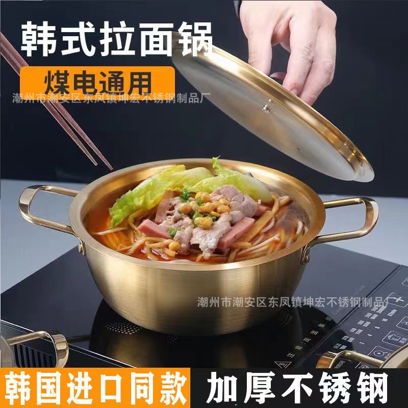 Panci memasak Bakmi instan gaya Korea, panci memasak kecil telinga ganda stainless steel, panci sup rumah tangga gaya Korea, panci ramen memasak mie
