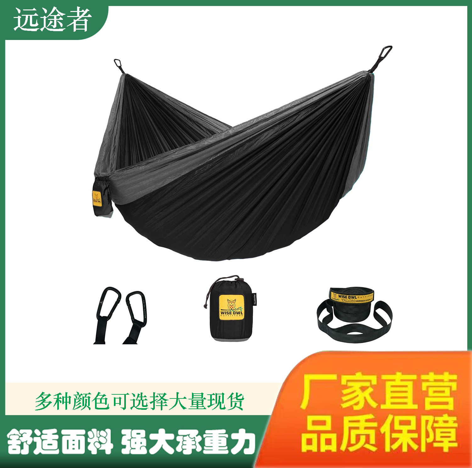 Tempat tidur gantung nilon parasut 210t/70D, kursi gantung berkemah luar ruangan sangat ringan berputar nilon tunggal dobel