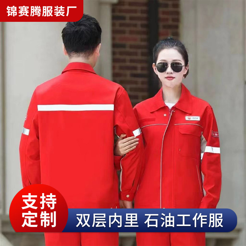 新款中石油工作服网格春秋防静电长袖工装双层反光条加油站劳保服
