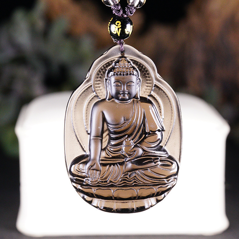 Grosir obat obsidian beku es alami kalung liontin Bodhisattva Buddha perhiasan kristal grosir
