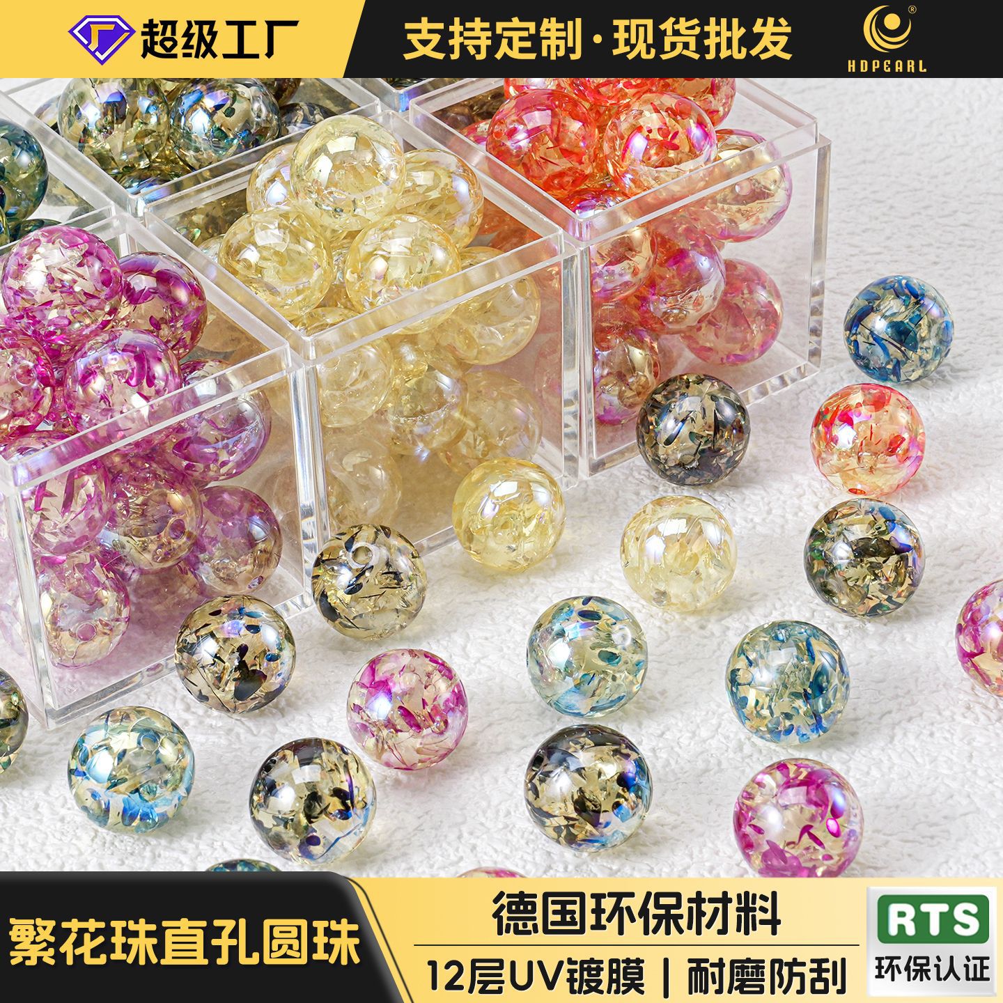 Manik-manik bulat transparan berkualitas tinggi Haijia dengan lubang lurus untuk aksesori DIY gelang, rantai ponsel, dan kunci, grosir.