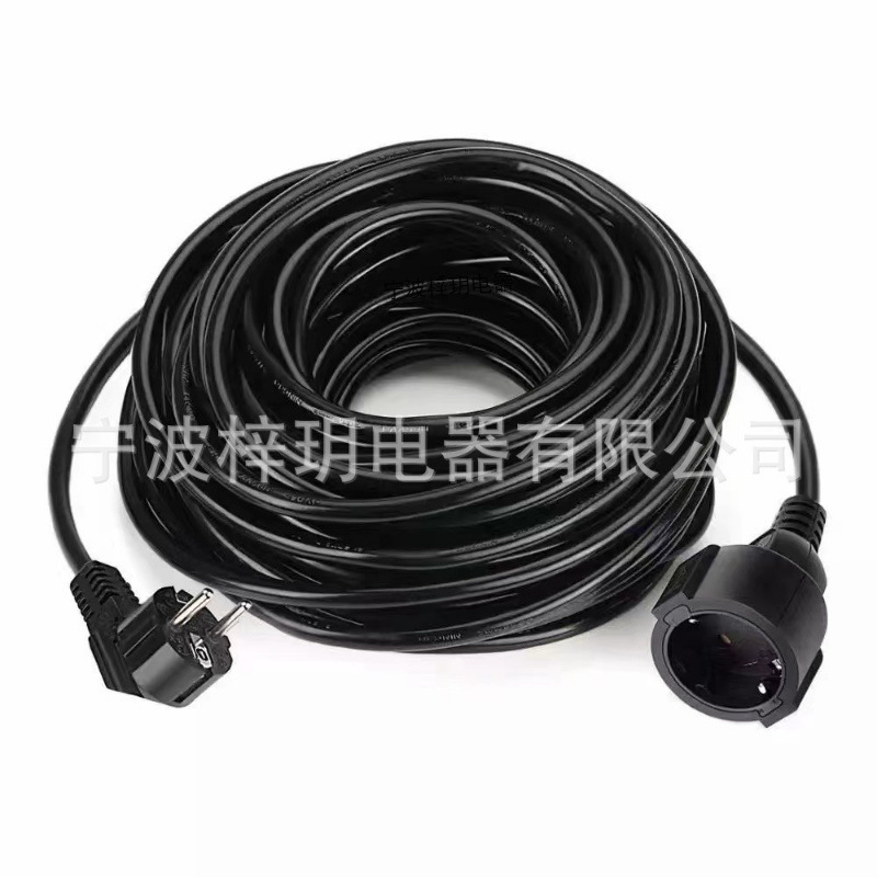 Warna Hitam Kabel Perpanjangan Karet Eropa VDE Colokan Anti Percikan IP44 Tipe Jerman