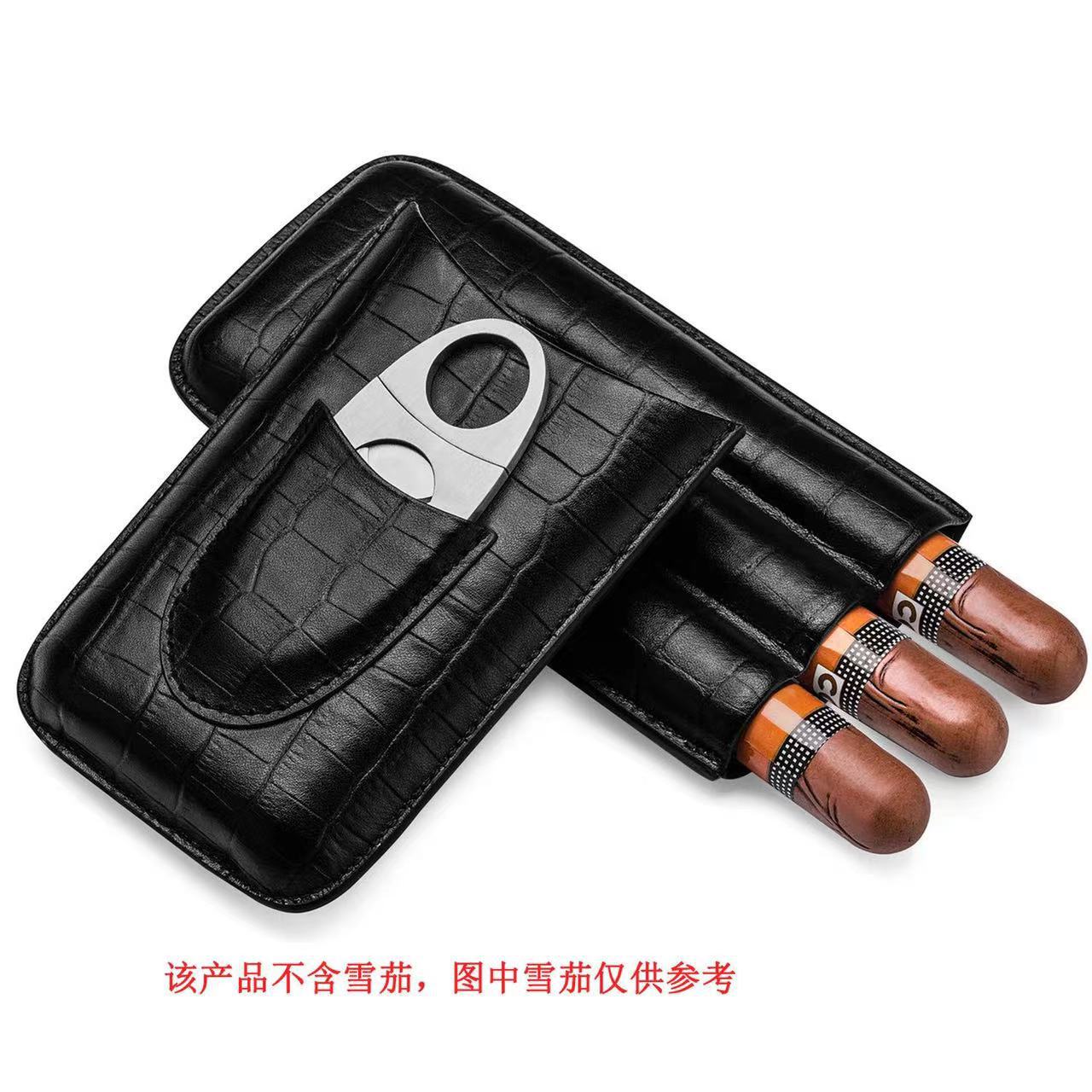 Kotak cerutu portabel casing kulit cerutu perjalanan portabel 3 Pak dengan Gunting cerutu melembapkan casing kulit penjualan langsung dari pabrik