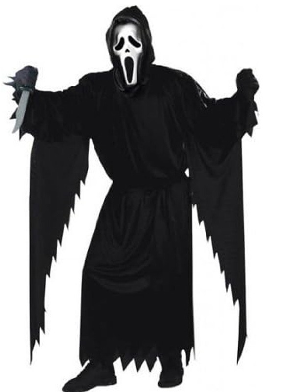 Kostum hantu anak-anak Halloween, pakaian hantu horor, kostum scream cos, pakaian topeng kematian, jubah topeng