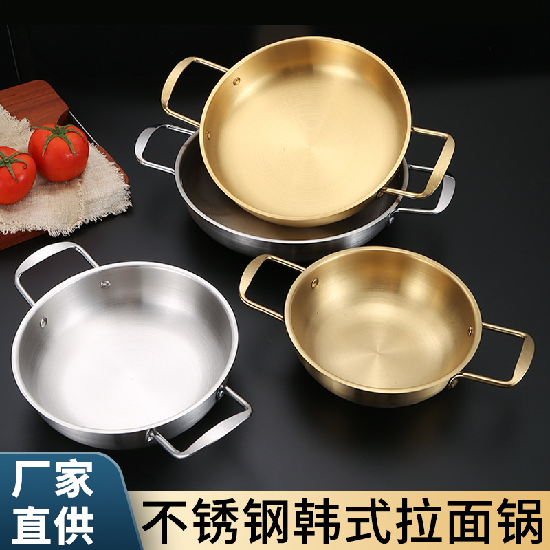 Produsen panci baja tahan karat gaya Korea pot kering binaural emas panci kering ramen pot sup tentara panci panas perdagangan luar negeri grosir