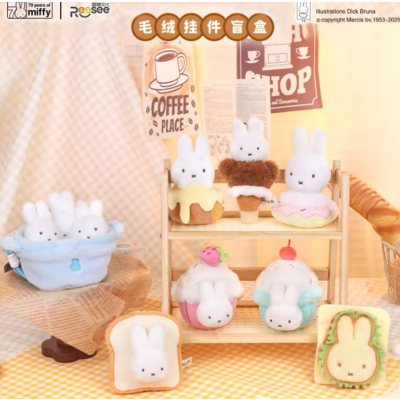 Lei Xi Miffy Food Workshop plush keychain blind box, cute little bunny accessory doll gift.