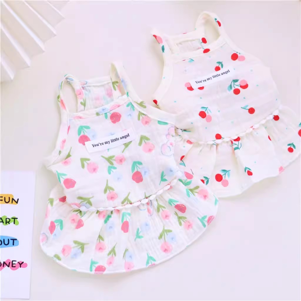 Pakaian anjing kucing hewan peliharaan INS rok bunga benang katun tipis musim semi dan musim panas Teddy beruang anjing kecil