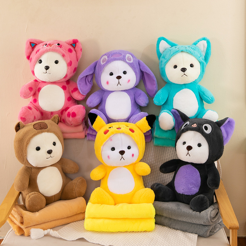 Hewan kartun lucu tiga dalam satu bantal boneka quilt bantal penggunaan ganda bantal kantor mobil AC selimut makan siang