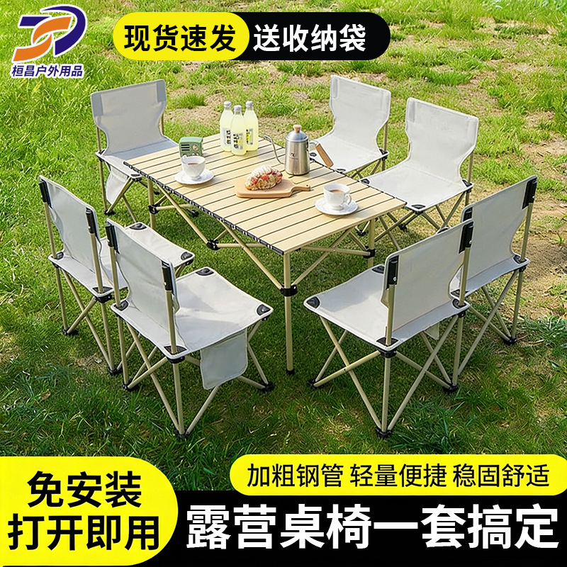 Kursi lipat luar ruangan, kursi berkemah portabel aluminium Aloi, Meja gulung telur baja karbon luar ruangan, piknik, berkemah, grosir