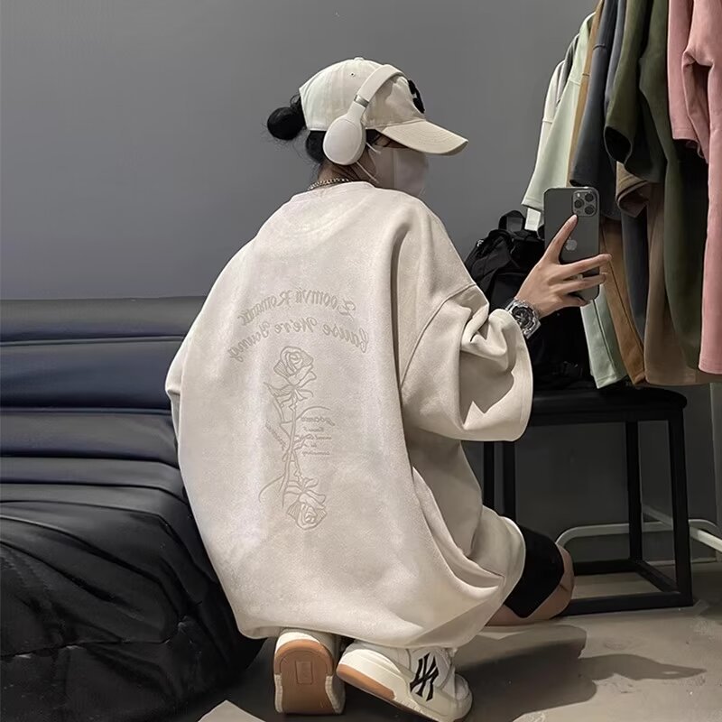 Suede kaus Amerika Pria, Kaos lengan setengah longgar ukuran besar lengan pendek musim panas