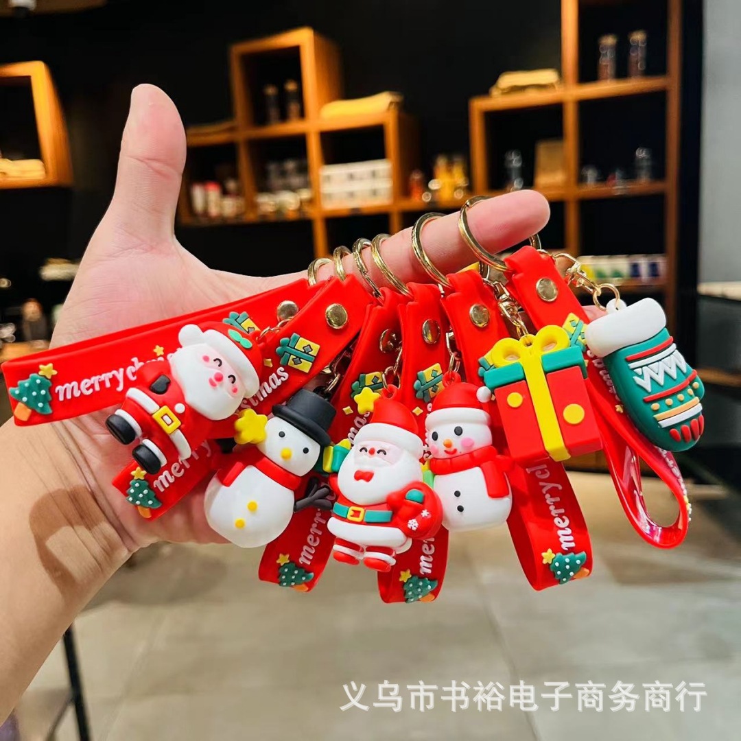 Santa Claus gantungan kunci liontin manusia salju Natal gantungan kunci tas mobil ornamen lintas batas mendorong hadiah grosir