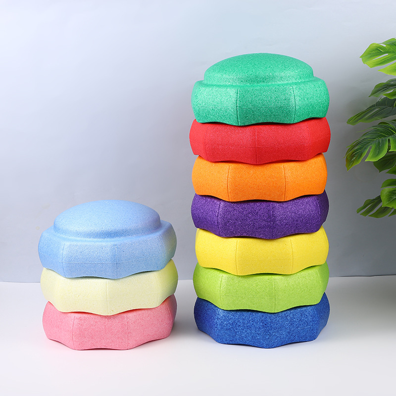 Mainan sensorik batu lintasan pelangi bulat, papan keseimbangan batu loncatan EPP rumah anak-anak taman kanak-kanak 2024